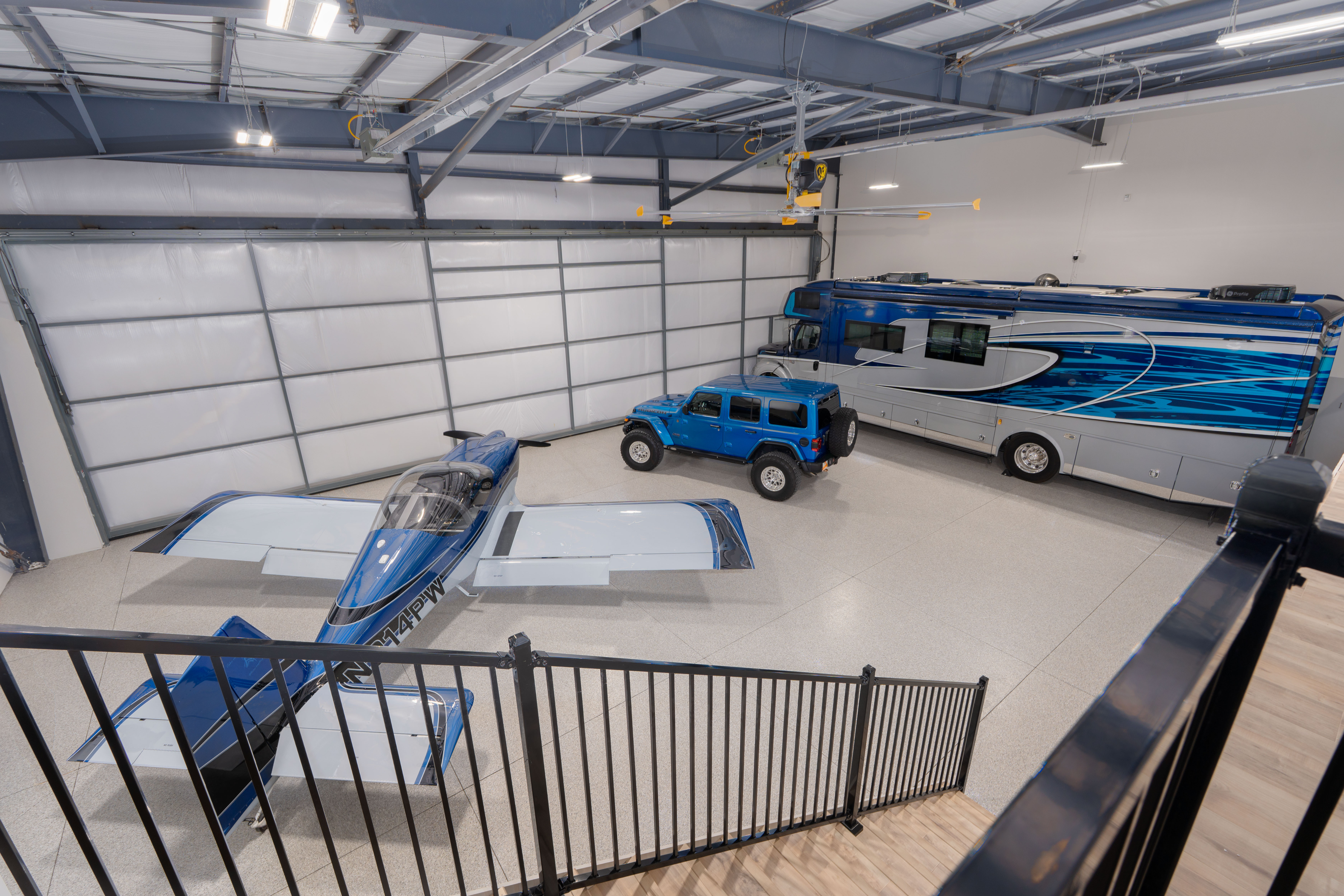 High-speed internet, WiFi, security cameras, smart hangar door entry.