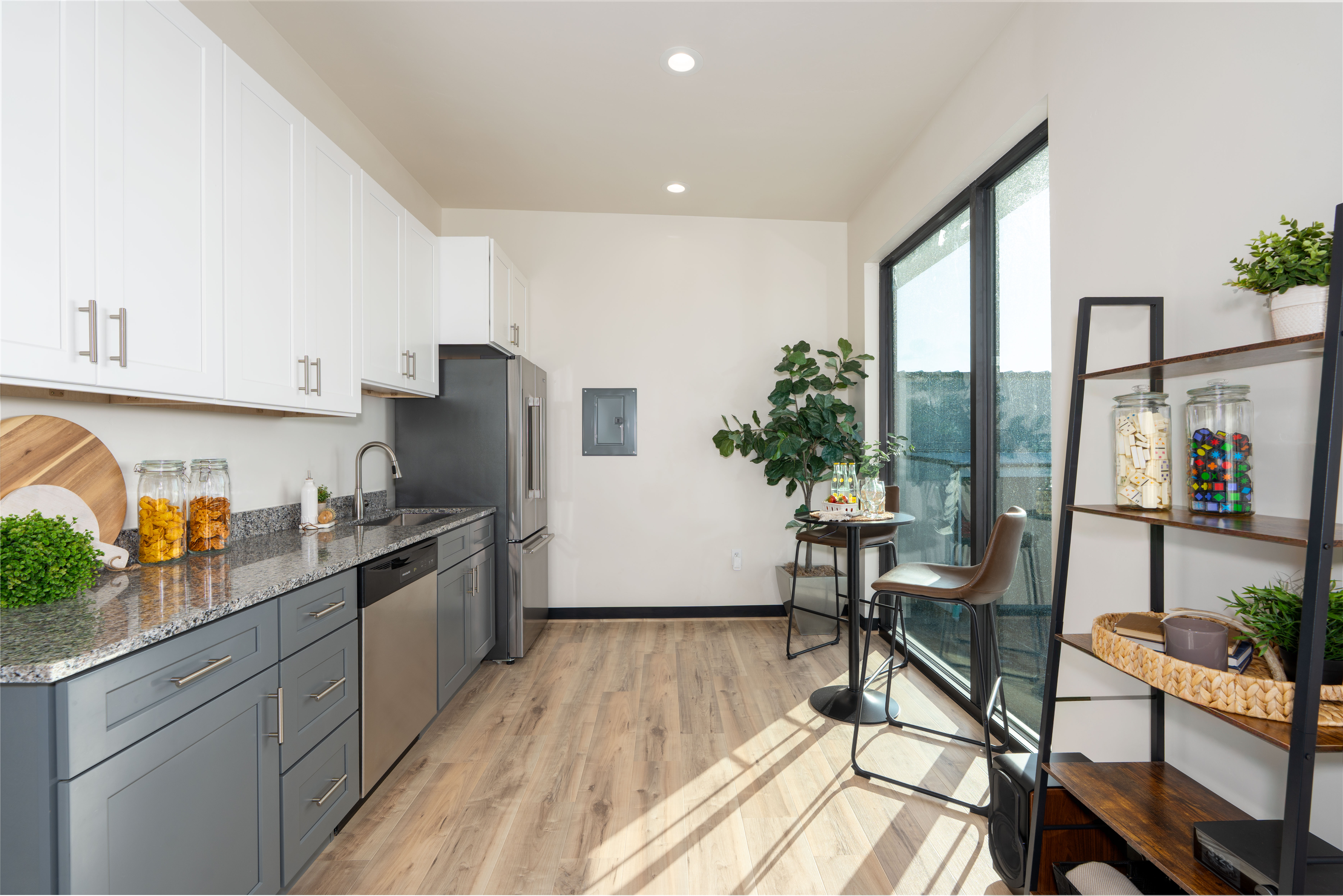 Epoxy or polished floors, drywall and paint, kitchenettes, mezzanines, office, sleeping, and lounge areas.