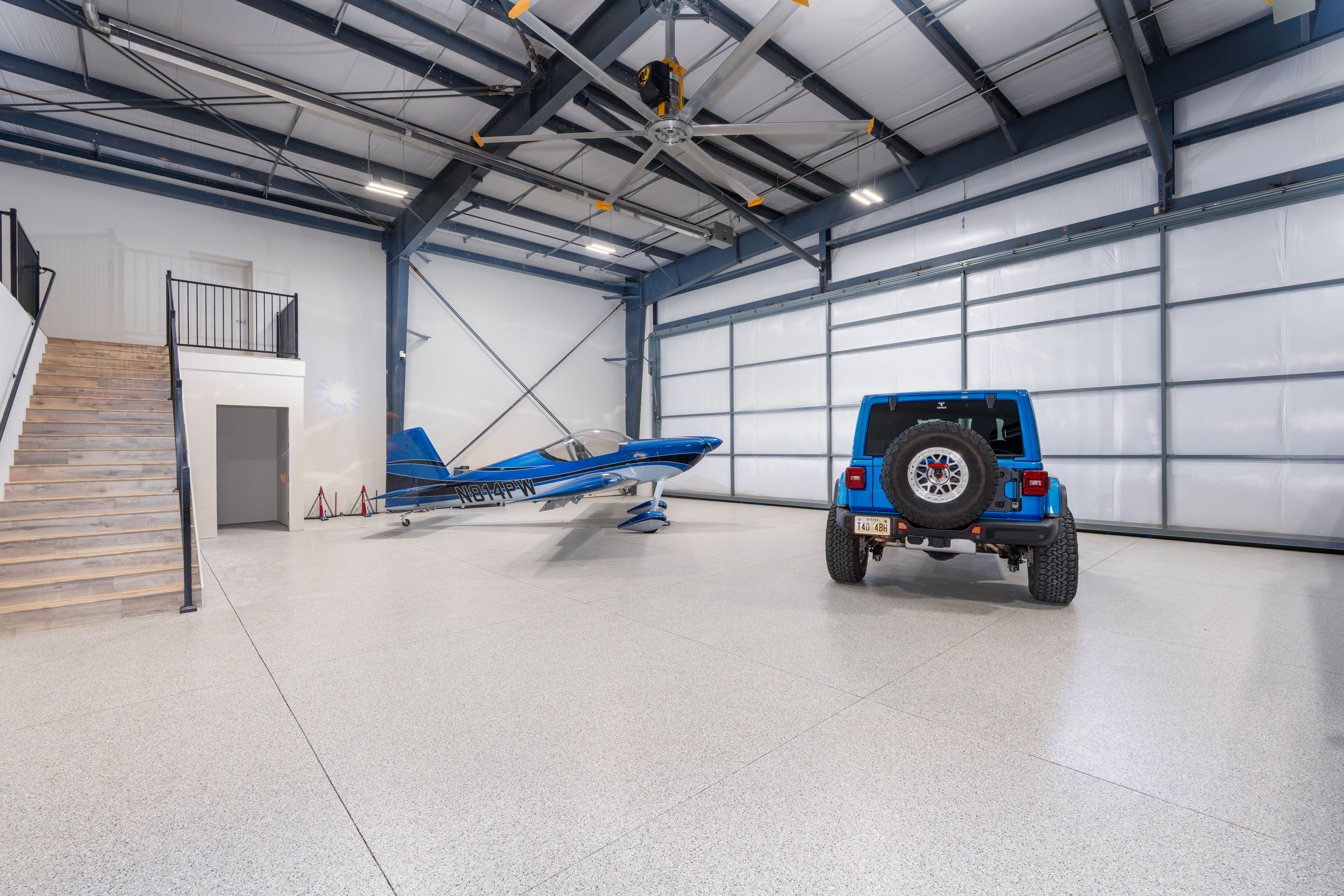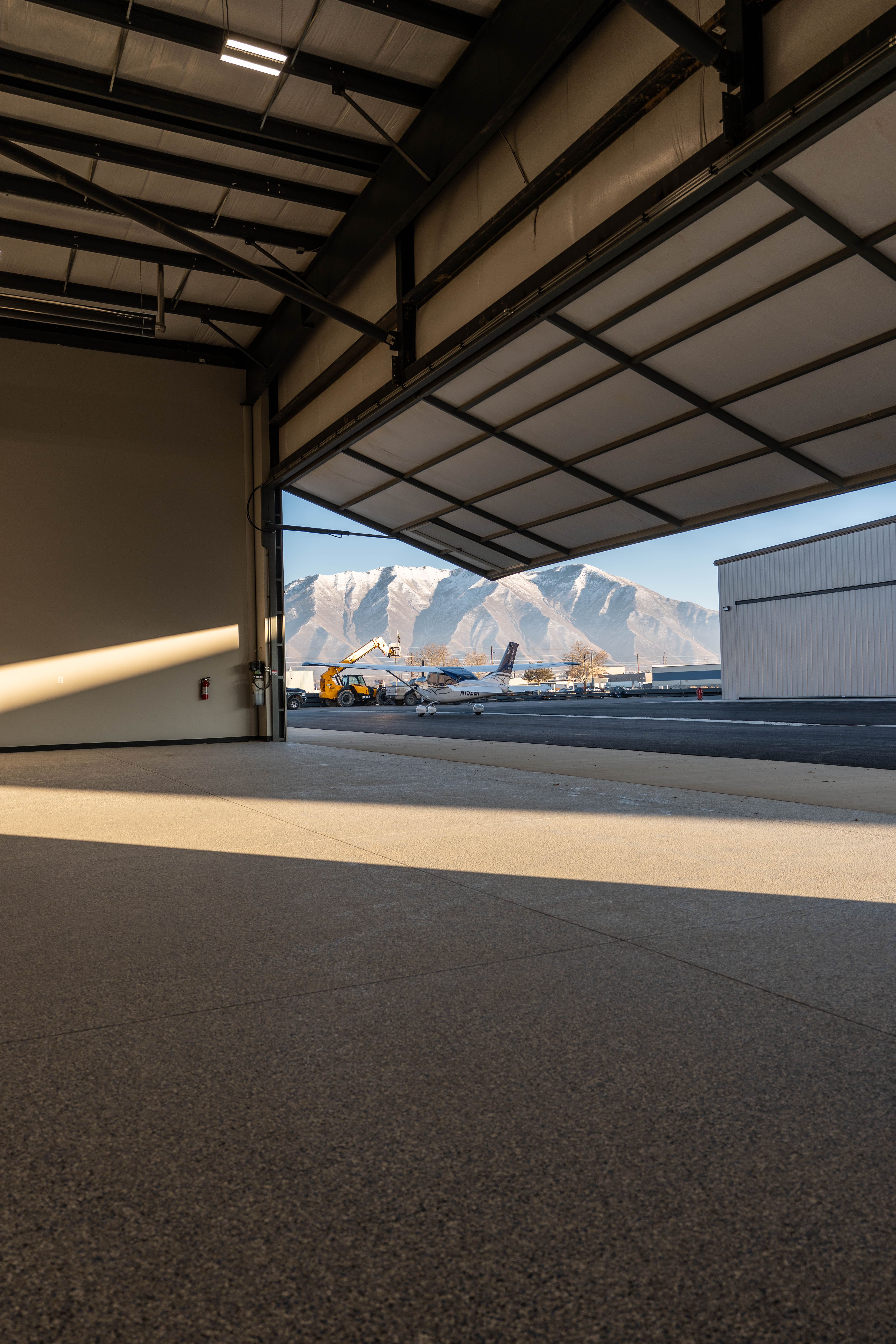 The hangars are built with heavy-duty, reinforced concrete floors designed specifically for aircraft loads and aviation use.